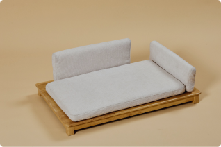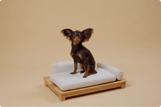 Объект для отдыха, созданный с учетом архитектуры пространства и привычек собаки. Материалы, форма и пропорции позволяют ему существовать в интерьере как полноценный элемент.